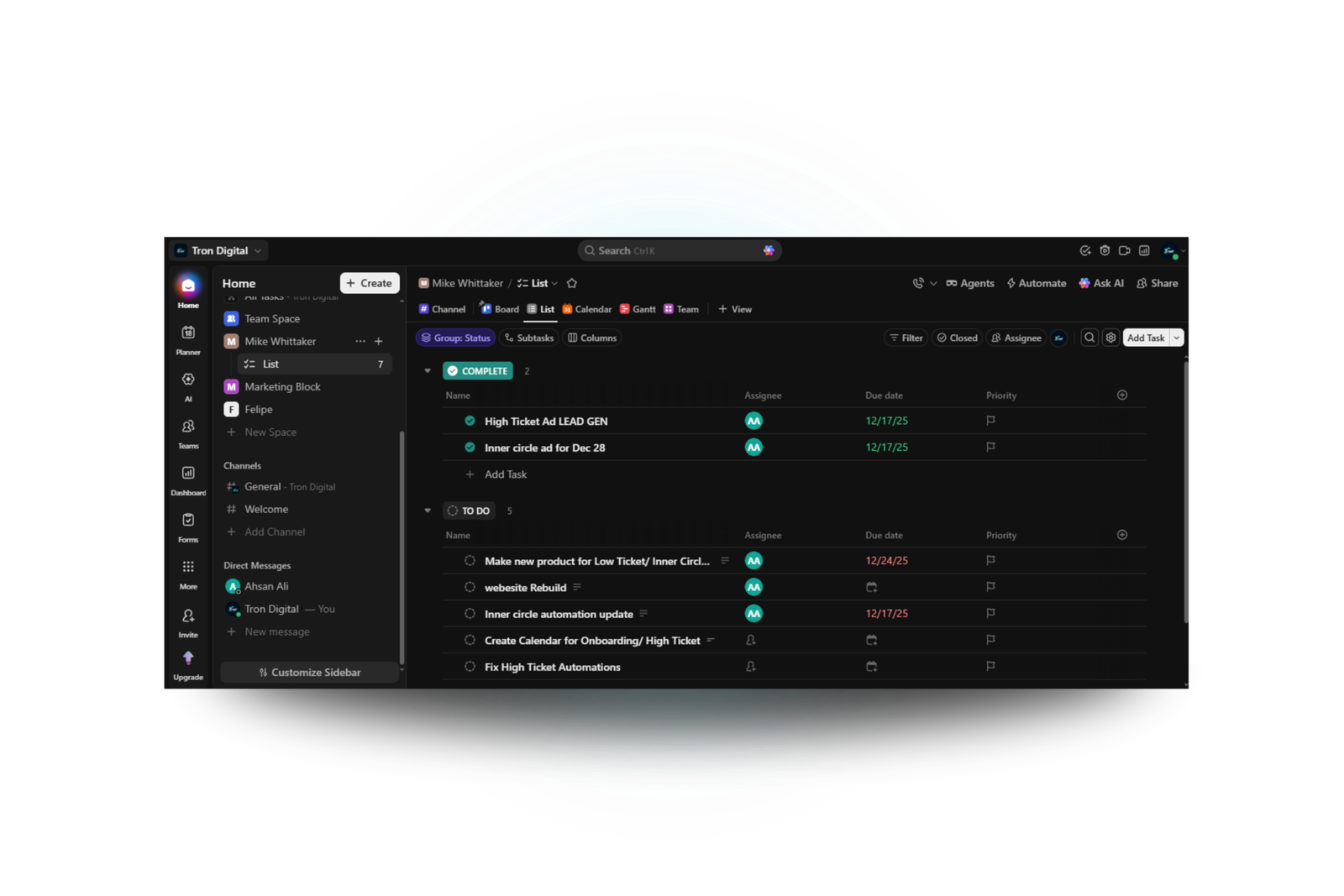 Access Slack & ClickUp to communicate, assign tasks and track progress easily.